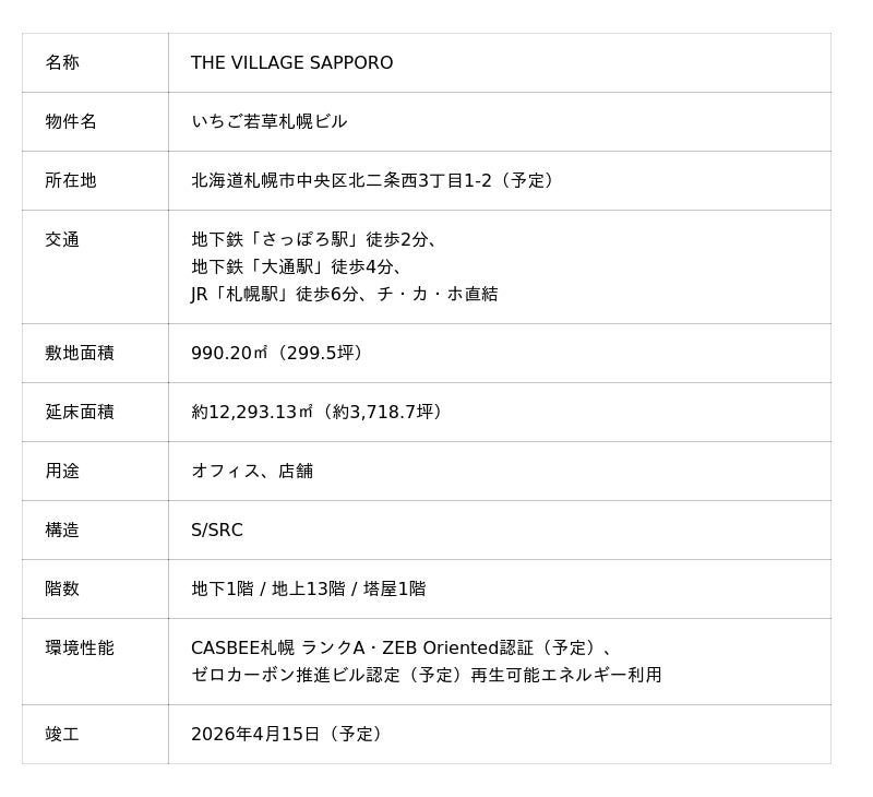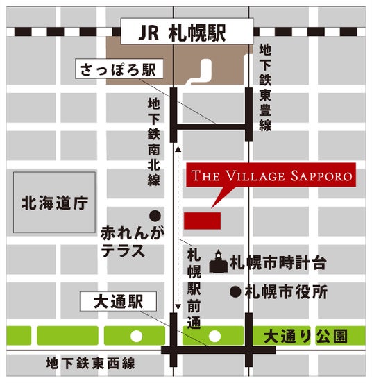 当社は、札幌の好立地に新築オフィスビル「THE VILLAGE SAPPORO」の開発を進めています(2026年4月竣工予定)。THE VILLAGE SAPPOROは、「チ・カ・ホ(札幌駅前通地下歩行空間)」にも直結しており、四季を通じて安全、快適なアクセスが可能です。