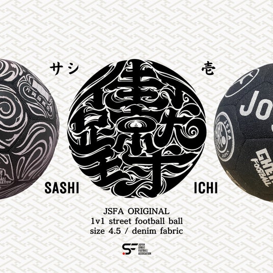 国内のデニム生地ボールのニーズを鑑み、JSFAに関わる国内外パートナーのロゴを配したオリジナルボール。ボールのネーミングの"ICHI"は初代オリジナルボールを表している。