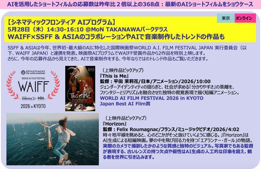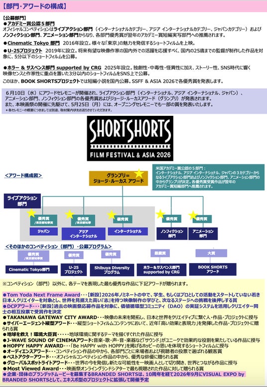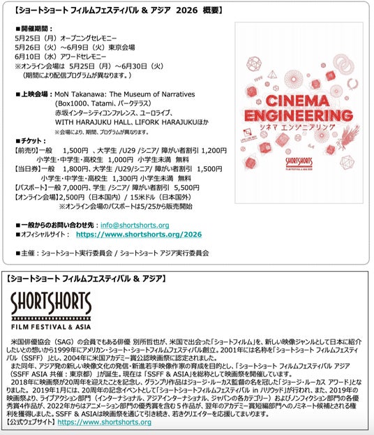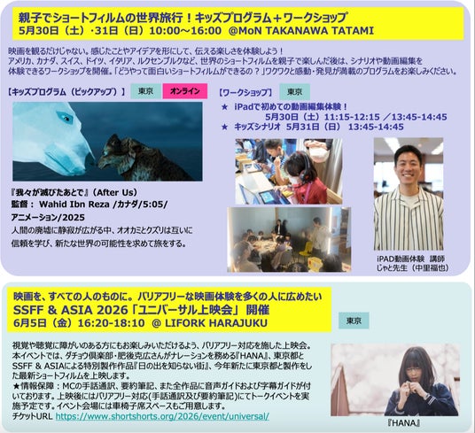 米国アカデミー賞公認・アジア最大級の国際短編映画祭、ショートショート フィルムフェスティバル & アジア(略称:SSFF & ASIA) 2026各部門ノミネート作品および特別上映作品を本日、映画祭オフィシャルサイトにて発表、チケット販売をスタートいたしましたのでお知らせ いたします。