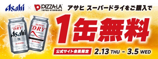 株式会社フォーシーズ(本社:東京都港区南青山 代表取締役会長兼CEO:淺野幸子)が展開する宅配ピザ「PIZZA-LA」は、2025年2月13日(木)~3月5日(水)の期間限定で、ピザーラ公式サイトから「アサヒスーパードライ」をご注文いただいた方に、もう1缶「アサヒスーパードライ」をプレゼントするキャンペーンを実施いたします。※ピザーラの酒販店舗限定