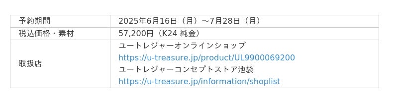 ユートレジャーオンラインショップ、ユートレジャーコンセプトストア池袋にて取り扱います。