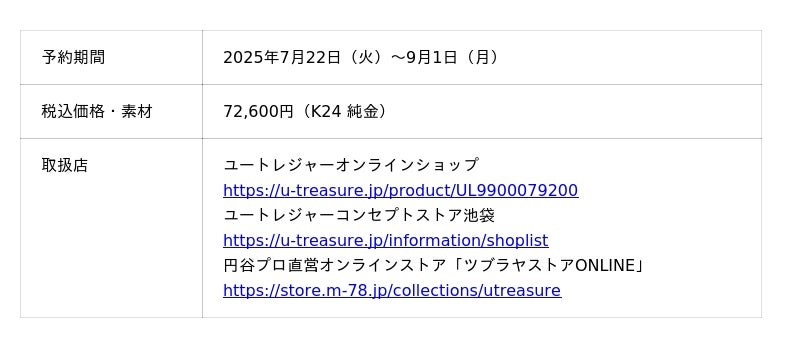ユートレジャーオンラインショップ、ユートレジャーコンセプトストア池袋、ツブラヤストアONLINEにて取り扱います。