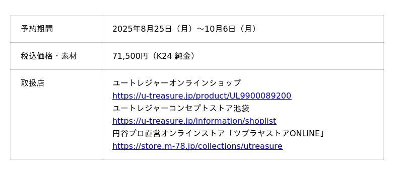 ユートレジャーオンラインショップ、ユートレジャーコンセプトストア池袋、ツブラヤストアONLINEにて取り扱います。