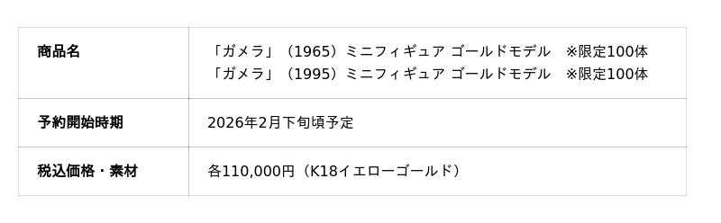 60年の時を超えて、ガメラがK18イエローゴールド&シルバーでよみがえる!完全受注生産・数量限定フィギュアが2026年2月下旬頃より予約開始