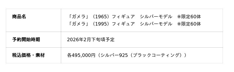 株式会社ユートレジャー(本社:東京都新宿区、代表取締役社長:青木 興一、株式会社ケイ・ウノの連結子会社)は、2025年11月27日で60周年を迎える『ガメラ』とコラボレーションした数量限定フィギュアを発売します。素材はK18イエローゴールドとシルバー素材をご用意。完全受注生産で、2026年2月下旬頃より受け付けを行います。ユートレジャーでは初めての取り扱いライセンスとなります。