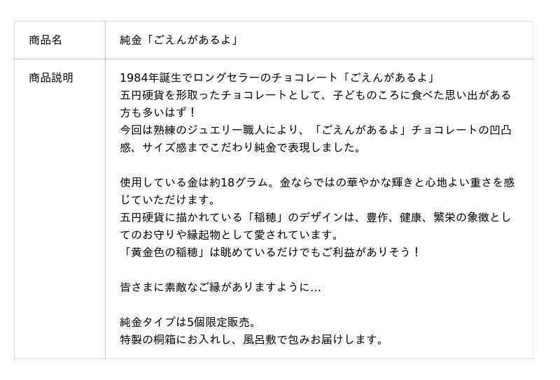 その価値 5円玉18万枚分?!ご利益のありそうな『いいご縁の日』に、純金製「ごえんがあるよ」が予約受付開始!