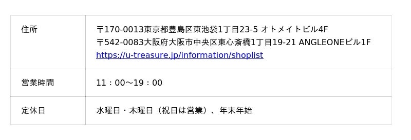 お客様のお問い合わせ窓口(ユートレジャーオンラインショップ)◆お問い合わせフォーム>> https://u-treasure.jp/contact