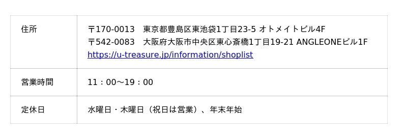 お客様のお問い合わせ窓口(ユートレジャーオンラインショップ)◆お問い合わせフォーム>> https://u-treasure.jp/contact
