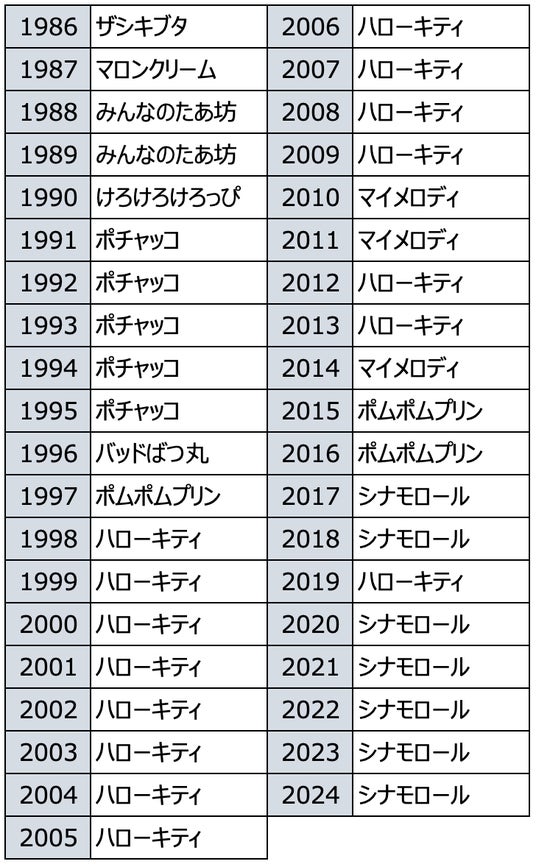 さらに上位常連キャラクターである「ハローキティ」や、今年アニバーサリーイヤーを迎えている、50周年の「マイメロディ」と「リトルツインスターズ」 、40周年の「ハンギョドン」 、 20周年の「クロミ」も好調な滑り出しを見せました。