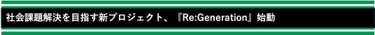 このビジョンをより広く深く届けるため、この度、新プロジェクト『Re:Generation』を立ち上げました。本プロジェクトは、「新世代の再生」をテーマに、次の3つの活動を柱として展開します。