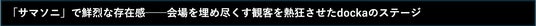 - 「2025年のサマソニのスタートは、完全に初めましてでライブを見たdockaから。身振りやMCは初々しくて、可愛げのある感じだったのにライブでのドラムとボーカルの表現力のインパクトはずるいよね。またどっかで必ずみたい。」