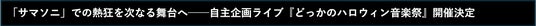 「サマソニ」での熱い反響を受け、dockaは次なる舞台として10月27日(月)に自主企画ライブ『どっかのハロウィン音楽祭』を開催いたします。「サマソニ」で生まれた熱気と共感をさらに進化させ、音楽・ファッション・アートを融合した唯一無二の世界観をハロウィン仕様に染め上げた一夜限りの特別なステージとして届けます。ぜひ会場で、“心の廃墟”に響く、彼女たちの渾身のパフォーマンスをご体感ください。