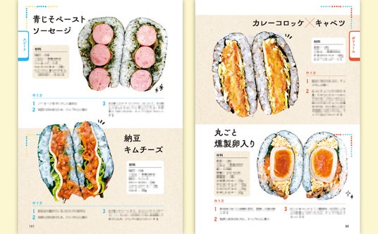 調理工程はとてもシンプル。切り込みを入れた海苔の上に、塩とごま油を混ぜたごはんと好きな具材をのせて、1、2、3!とたたむだけ。おにぎらずのように誰でも簡単につくれます。