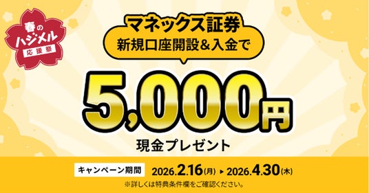 住信SBIネット銀行株式会社(本社:東京都港区、代表取締役社長(CEO):円山 法昭、以下「住信SBIネット銀行」)は、2026年2月16日(月)より、新規口座開設およびその他条件の達成で最大125,000円相当をプレゼントする「春のハジメル応援祭」キャンペーンを開始いたしました。