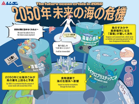 「海底シンポジウム」は、世界の海に広がる「藻場消失」の問題解決に挑戦する取り組みをテーマに、海の生き物たちとレンゴーのプレゼンターが対話する、ユニークな全編アニメーションとなっています。海のごみ問題や海ごみにならない水産資材の開発の必要性をわかりやすく表現したイラスト制作も手がけました。