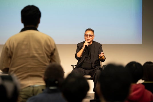 後半は、「対話コーナー」を設け、会場に参加した学生からの質問に、三池監督が直接お答えになりました。「多様な題材やトーンの作品を手がける三池監督の幅広い表現を生み出すモチベーションや着想はどこから生まれるのか?」「Instagramのリール動画などのショートビデオや、ショートフィルムは映画を超えていくのか?」といった質問に対し、三池監督は、AIと映画の関係性、そしてAIを創作の手段としてどのように活用しているかについてご自身の考えを交えながら、学生一人ひとりに丁寧に言葉を返されていました。