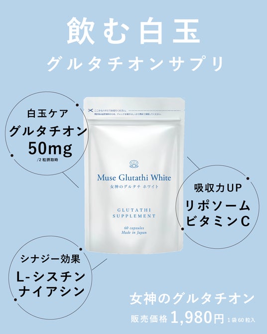 新発売したグルタチオンサプリ「ミューズ グルタチホワイト」の詳細はこちらからご確認ください。