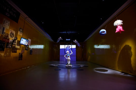 「最悪な時代に、人はどのように愉快に生きられるのか?」との問いのもと、多様な問題を抱える社会をユーモアとフィクションを通して生き抜く術を検討し、虚実が入り混じる未来像を市民とともに構築するプロジェクト。科学や人類史にまつわる多層的なリサーチをもとに、展覧会では、ディストピアと化したパラレルワールドの日本の姿を描くインスタレーション作品を発表。
