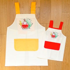 (キッズ&レディース)だるまさんと エプロン 親子セット レッド&イエロー(ギフトラッピング込み)(絵本ナビオリジナルグッズ)
