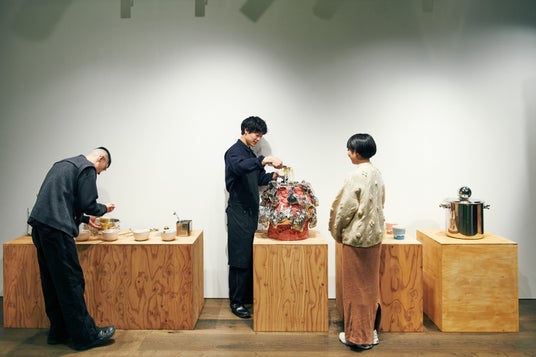 桑田卓郎+「く」の作品を実際に使って展示空間でうどんを試食していただけます。