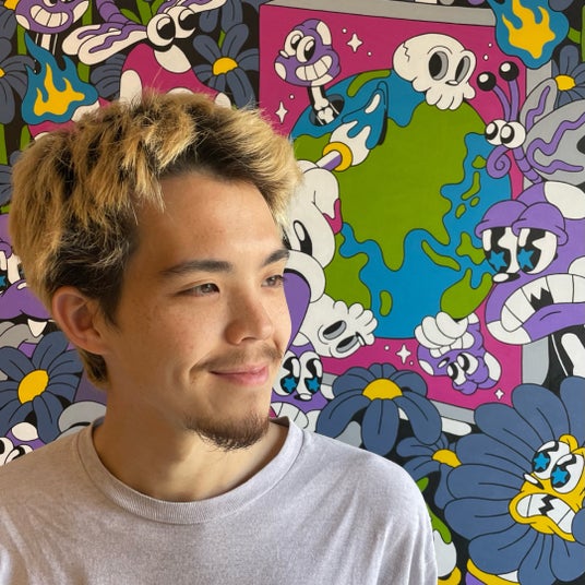 BAKENEKO2000年、東京生まれ。日本とアメリカにルーツを持ち、2020年より「BAKENEKO」として活動を開始。ロサンゼルスと東京を拠点に国内外で作品を展開。イベントのビジュアルやブランドとのコラボも多数手掛ける。カラフルなキャラクターを通じて、現代人の心の闇を鮮やかに描き出すアーティスト。