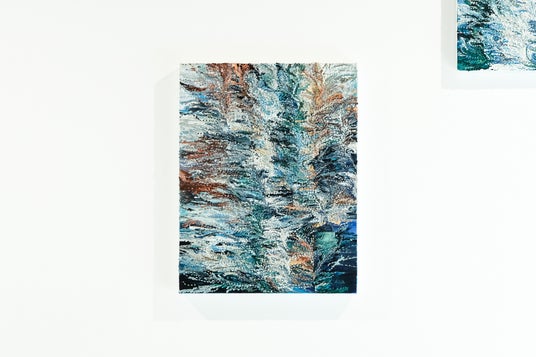 高山夏希 / Natsuki Takayama1990 年東京生まれ。平面作品を中心に、粒子の感触を確かめるように人間と物質の関係の再考を試み、人・動物・モノ・環境などが一体性をもった自然観を表現している。情報技術の発達によって記号化されたものの結びつきは強まったが、 他方で記号化未満の事物への感性は弱まってしまうのではないだろうか。それによって周囲を取り巻くものに対しての実感が薄れてしまっているように感じている。こうした時代の中で失われてしまった様々な物体と人間の関係の回復を試みるように、近代的な世界観とは異なる、人間を含めた生物と自然が一体化した世界観を提示している。私たち自身が、絡まり合った世界の一部として生きる事を再認識する事によって、現代の人間の生を再考できるのではないだろうかと考えている。アクリル絵の具を流れる 粒子のように物質的な状態として扱い、積層して彫刻刀やカッターの刃などを用いて削り出すなど、平面を主な媒体としながら、触覚的あるいは彫刻的ともいえる手法を用いて制作をしている。
