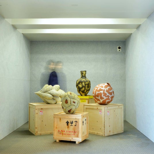 器に施される装飾物としてのモチーフを、拡大したり、切り取ったり、圧縮したりすることで「器」という枠組みをはみ出した「器であって器でない」形を探っています。