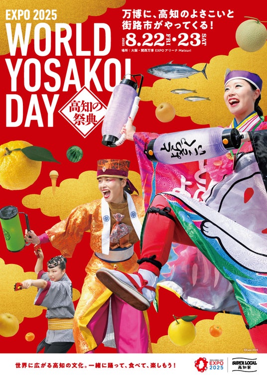 高知県(知事:濱田 省司)は、8月22日(金)、23日(土)の2日間、大阪・関西万博の会場内にあるEXPOアリーナ「Matsuri」、ポップアップステージ東外、ポップアップステージ西(ポップアップステージ西は22日のみ)で、「EXPO2025 高知の祭典 WORLD YOSAKOI DAY」を開催します。