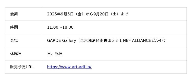 ADF(NPO青山デザインフォーラム)は、「ADFアートギャラリープロジェクト」の第35弾として、アーティストみょうじなまえと高橋鮎子による二人展「Unframing the bodies(アンフレーミング・ザ・ボディーズ)」を2025年9月5日(金)から9月20日(土)まで、東京・南青山のGARDE Galleryで開催いたします。