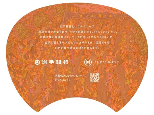 株式会社ヘラルボニー(以下、ヘラルボニー)は、2025年8月1日(金)~4日(月)に開催される「盛岡さんさ踊り」に合わせて8月1日(金)から契約作家・鳥山シュウ氏のアートを用いたオリジナルうちわを配布。(※ヘラルボニー旗艦店ISAI PARK、東京常設店HERALBONY LABORATORY GINZAと同市内・岩手銀行本店前にて数量限定で配布)また岩手銀行本店には鳥山氏の同作品を用いたアートバナーを7月より掲示しており、盛岡の夏の風物詩である祭りを、異彩を放つ作家のアートで彩ります。
