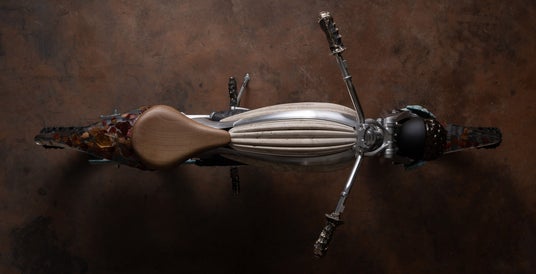 Mattia氏とFLYING FLEAの協力で生まれたMOTOTOTEMは、芸術的な視点からオートバイを再定義し、素材の選定は単なる美的価値を超えた深い意味を持ち、それらが優雅に調和することで自然とのつながりを表現しています。