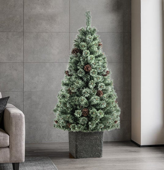本製品は、ヨーロッパでクリスマスツリーのモチーフとして広く親しまれるドイツトウヒをモチーフに、自然の姿を丁寧に再現しました。「リヴ ノール」は、石目調のポットで足元をカバーしており、お部屋の雰囲気に馴染みやすく、インテリアの一部として自然に飾ることができます。さらに、お気に入りのオーナメントを飾れば、手軽に北欧風のクリスマス空間を演出することも可能です。