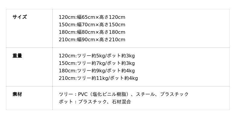 本製品は【120cm】【150cm】【180cm】【210cm】の4サイズ展開でお部屋の広さや置く場所に合わせてお選びいただけます。『リヴ ノール』はオーナメントが付属しないヌードツリーのため、そのまま飾ってもお楽しみいただけますが、ご自宅にあるオーナメントやライトで毎年の気分やテーマに合わせて、自由にアレンジをお楽しみいただけます。