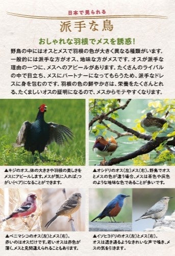 日本で見られるカラフルな鳥 ポスター/鳥の色はどうやって決まる?/派手な鳥/地味な鳥/構造色を持つ鳥/オススメ!かわいい野鳥グッズ ほか