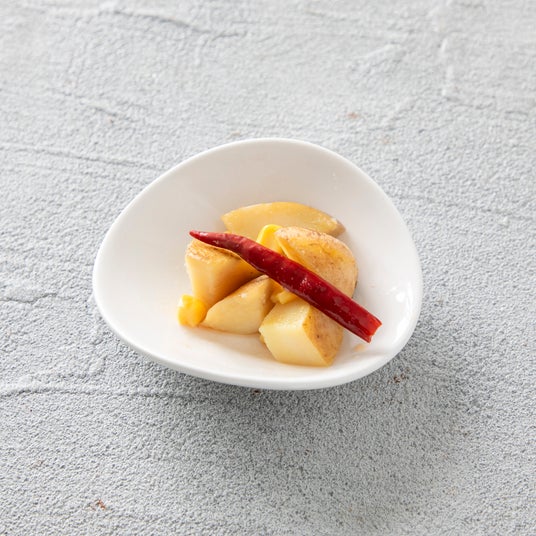 ジャガイモとコーンのカレーピクルス食欲そそるカレーのスパイシーさが特徴のピクルス。素材の旨味とスパイシーな香りがマッチした一品。