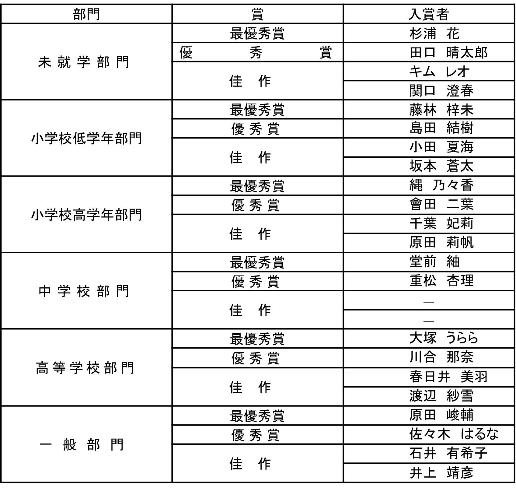 【募集部門】 未就学部門、小学校低学年部門、小学校高学年部門、中学校部門、高等学校部門、一般部門