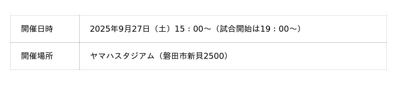 2025年9月27日(土)ヤマハスタジアムで開催 ~地域と連携したサステナブルな取り組みを実施~