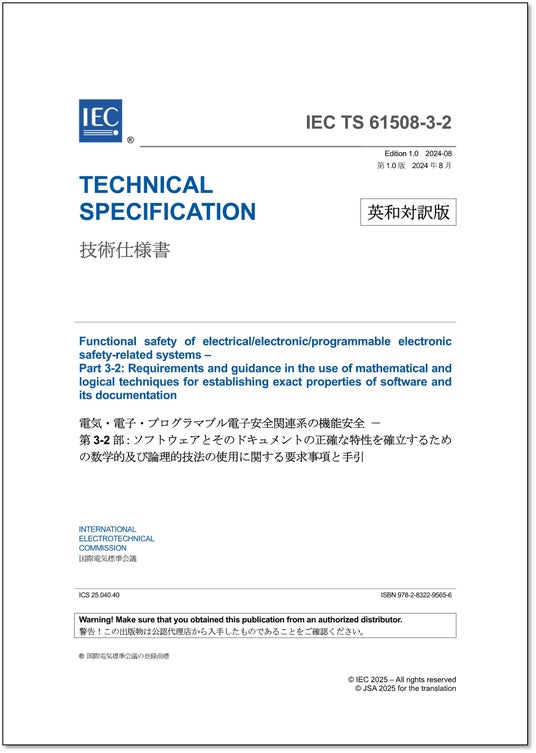 - IEC/TS 61508-3-2 Ed. 1.0:2024 (en)「電気・電子・プログラマブル電子安全関連系の機能安全-第3-2 部:ソフトウェアとそのドキュメントの正確な特性を確立するための数学的及び論理的技法の使用に関する要求事項と手引」