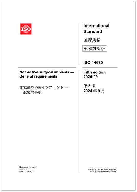 【新刊邦訳規格の発行】インプラントに関する国際規格「ISO 14630:2024」他3件の英・日対訳版を発行しました