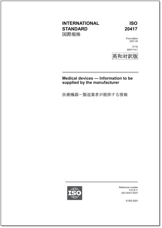 ISO 20417:2021 医療機器-製造業者が提供する情報 Medical devices -- Information to be supplied by the manufacturer《英語》税込価格:38,307円 A4判・72ページ