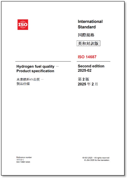 一般財団法人日本規格協会(本部:東京都港区、理事長:朝日弘)は、2025年7月15(火)に「ISO 14687:2025 水素燃料の品質-製品仕様」の邦訳(英・日対訳版)を発行いたしました。
