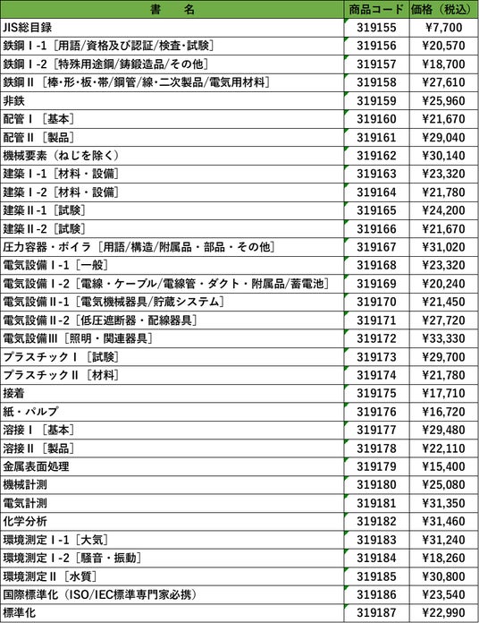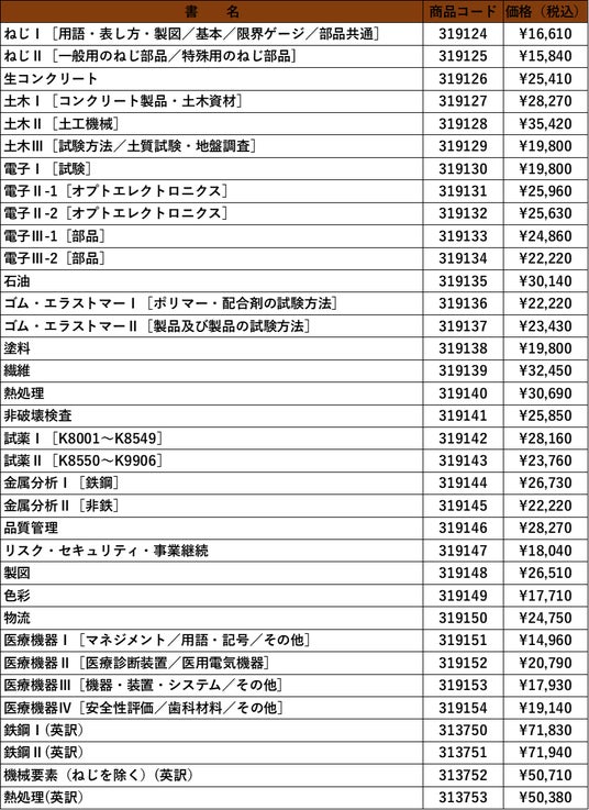 現在ご予約を受け付けております。お目当ての分野の有無は下記「★JISハンドブック 2026年版1月発行ラインナップ★」からご確認ください。