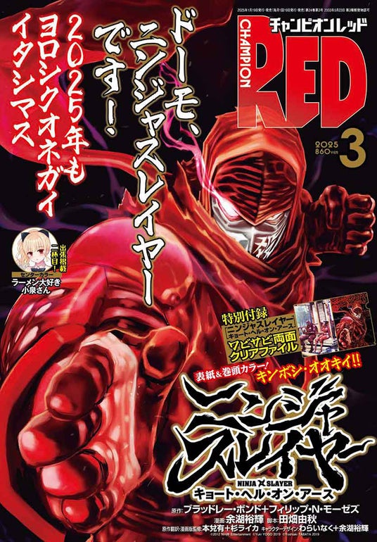 チャンピオンRED2025年3月号、日本文化の真髄「ニンジャスレイヤー キョート・ヘル・オン・アース」が表紙&巻頭カラー、そして付録に!!