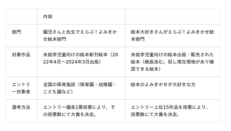 【「みんなのよみきかせ絵本大賞」概要】 ※今後変更になる可能性もあります。