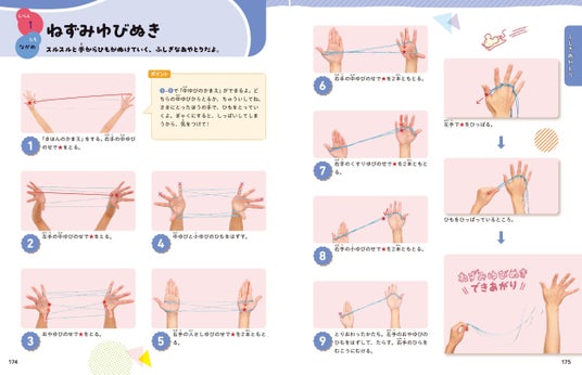 あやとりマスターの証「10段ばしご」はもちろん、さらに「14段ばしご」まで!100点以上の大ボリュームで充実の1冊!!『ひとりでも みんなでも 楽しい!決定版 あやとり大図鑑』1/14発売