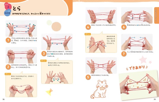大きな写真とわかりやすいテキスト、つまずきポイントの途中写真も豊富で、あやとり初心者さんも安心。