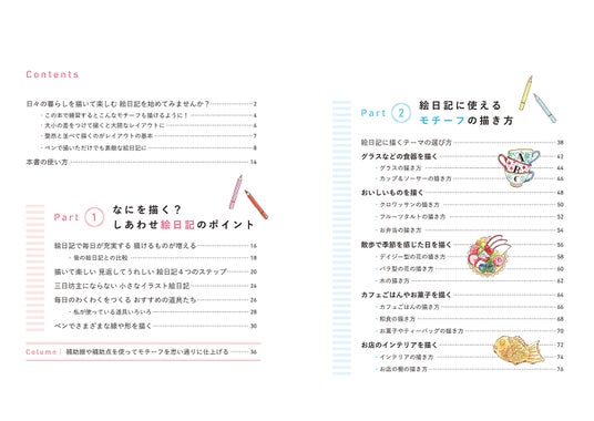 絵日記を楽しくスタートできるおすすめのアイテムから、絵日記がより魅力的に仕上げることができるかんたんなのに「絵」になるテクニックまで。