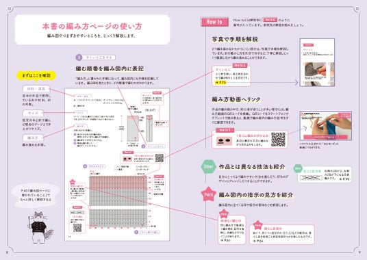 この本では、あまり詳しく解説されない「編み図」の読み方を、編み図に動画とイラストや写真をリンクさせることで、ていねいに解説。超初心者でも編み図を見て作品が編めるようになることを目指します。編み図が読めれば、本の作品や憧れの作品も編めるはず。