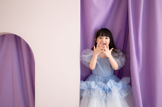 アーチに備え付けられた紫色のカーテンをパパとママがオープン!開くとそこにはワクワクする世界が広がっていて、最初は少し緊張していた表情が思わずにっこり笑顔に。その瞬間をカメラマンは逃しません!