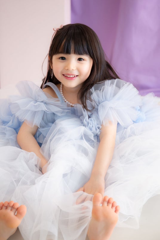 新背景に合わせたのは大人のドレスを子供サイズにオーダーして作られた新作ドレス。
